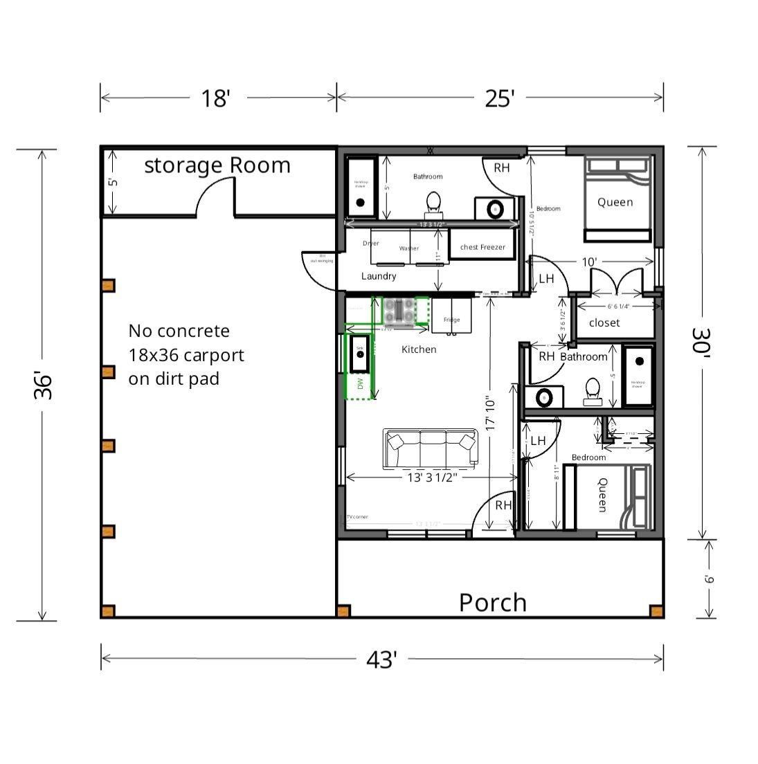 Kit#1 full turnkey 25x30 2bed 2bath with carport and storage room